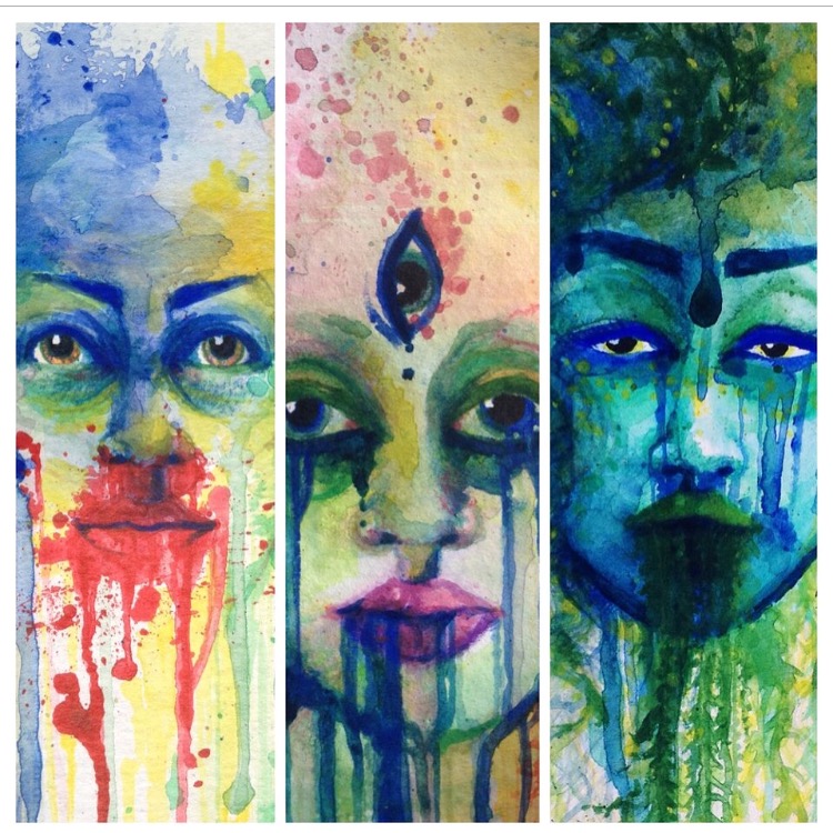 There are three individual watercolour portraits. They are listed separately at $50, but you can buy them all together and get a discount. All of them are 6"x6", made on durable watercolour paper. These are not prints, these are originals. Standard shipping charges apply.