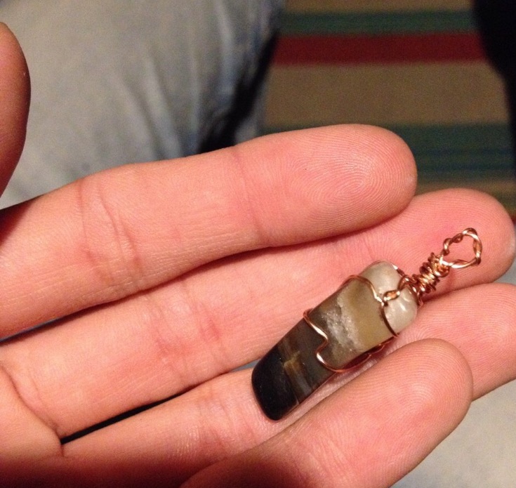 Small Agate Point wrapped in copper wire. Chain is not included.Can be made into a choker or you can purchase a chain to go with it. Standard shipping charges apply.