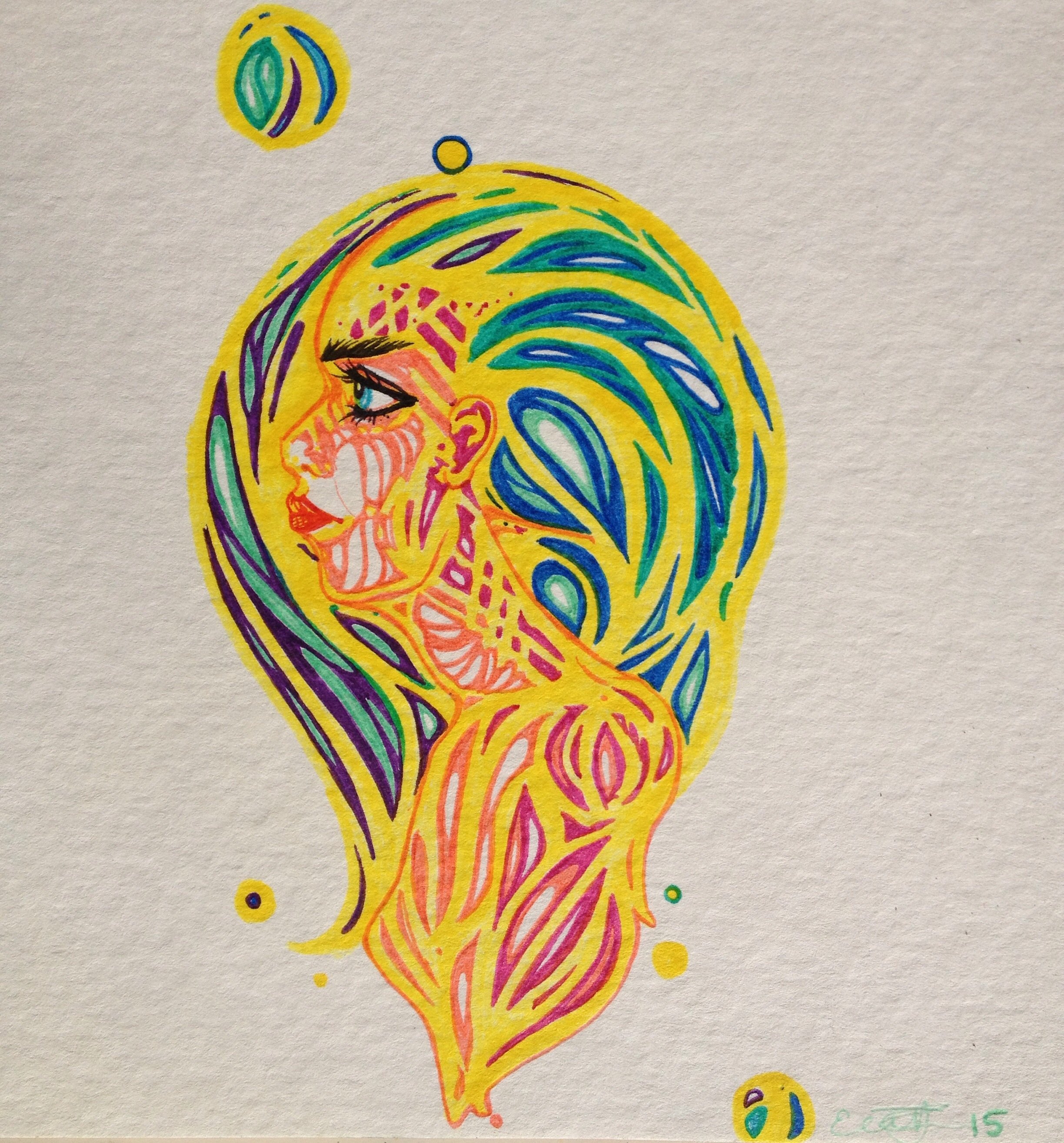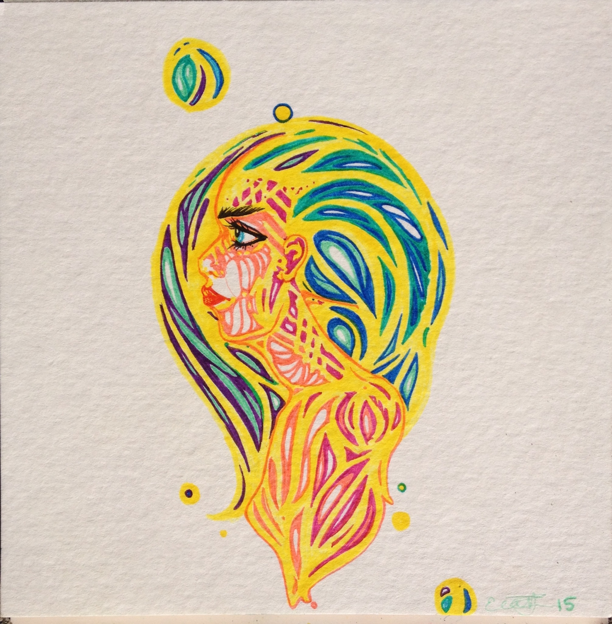 First in my series of my psychedelic women. Made on watercolour paper for durability. 6"x 6" This is not a print. This is an original piece of artwork. Standard shipping charges apply.