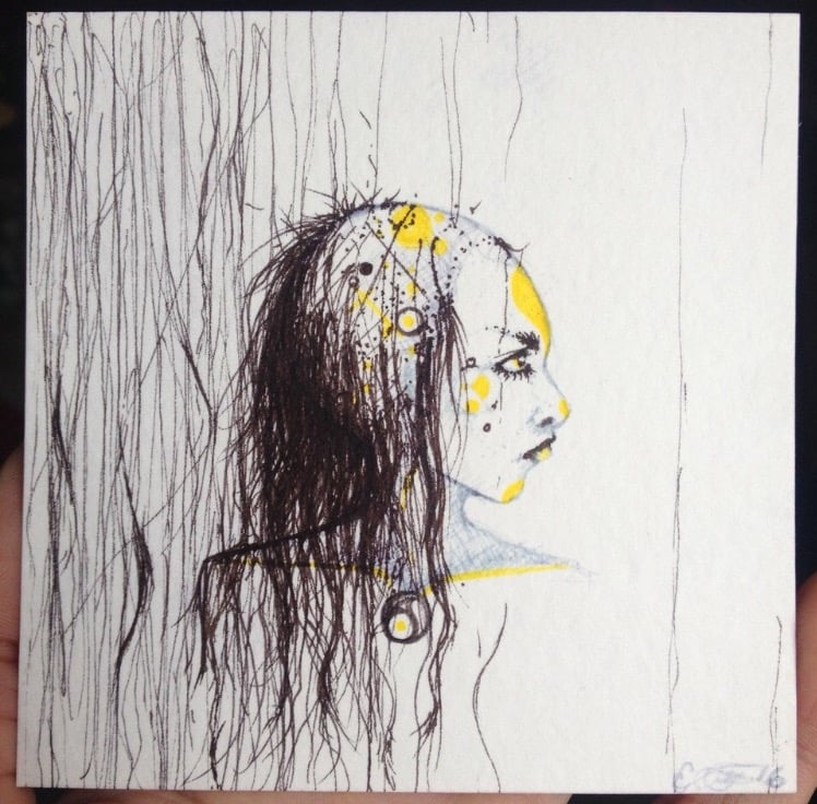 "Strands" a piece about Trichotillomania. 4"x4" watercolour squares with ink pens. This is not a print, this is an original piece. Standard shipping charges apply.