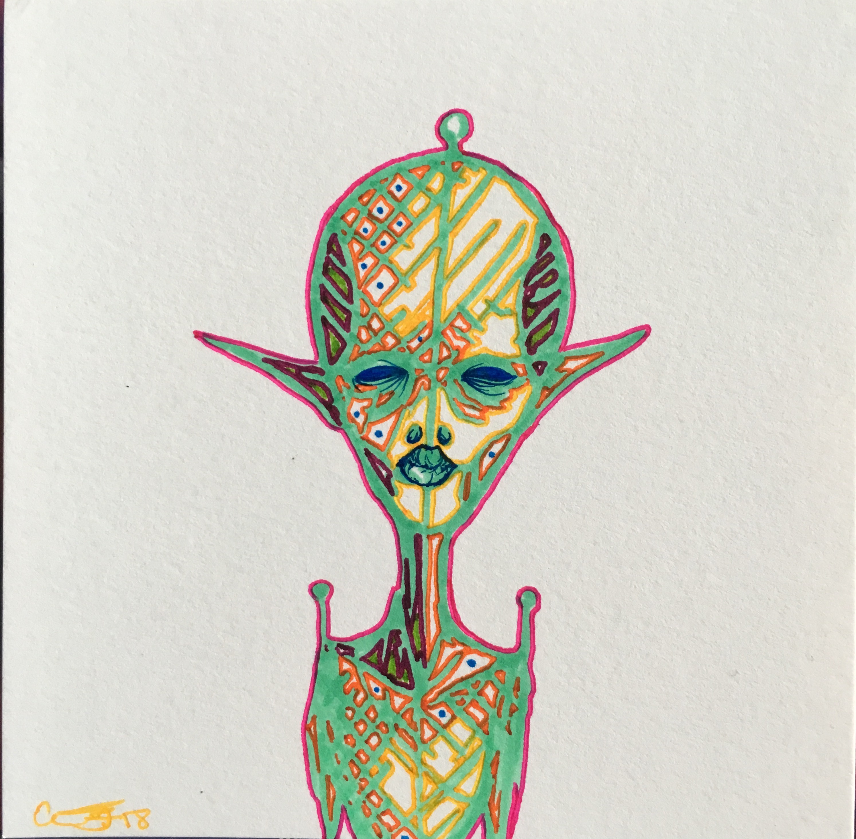 Mini Psychedelic Alien portraits are 4x4" and made with ink pens. This is an original piece, this is not a print. Standard shipping charges apply.