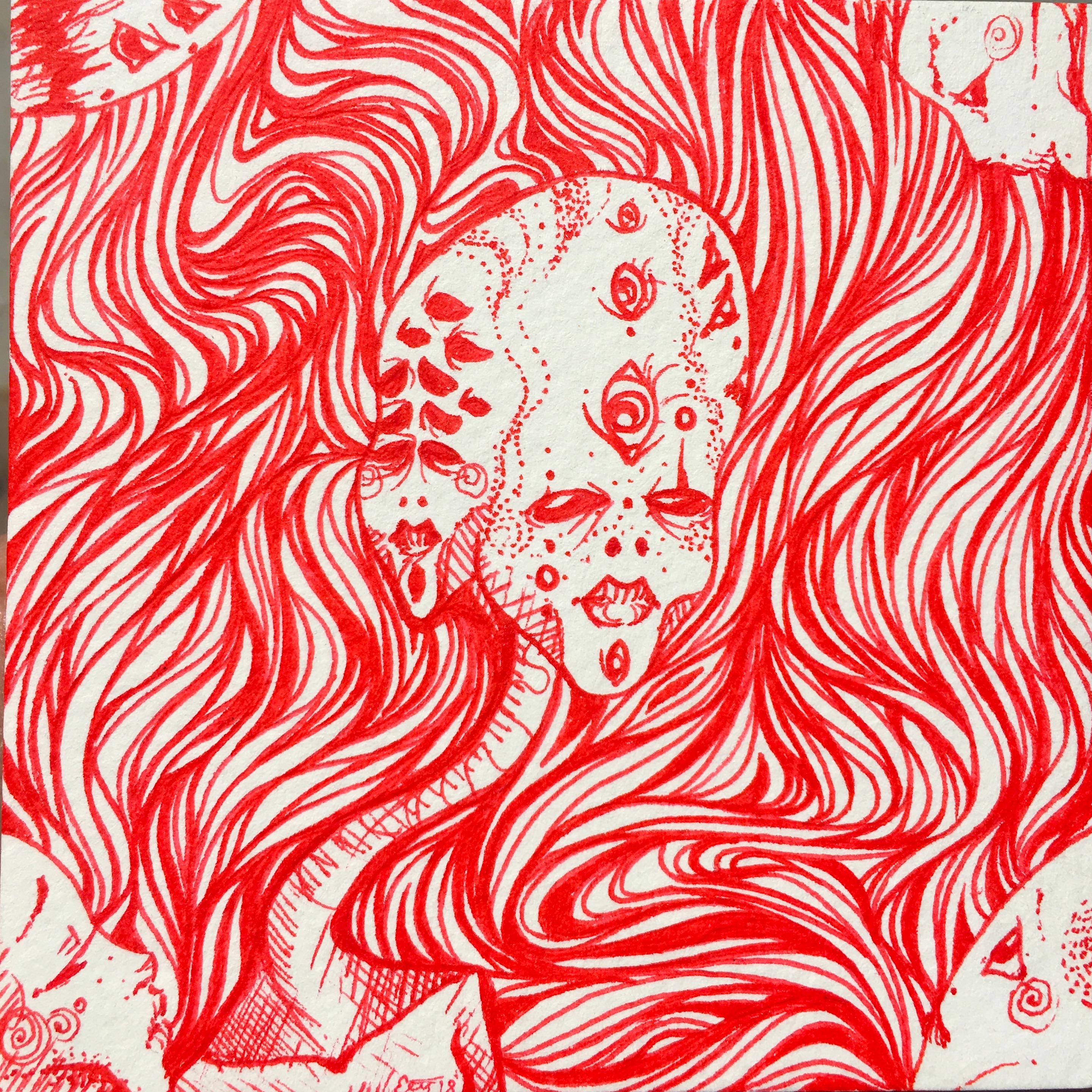 Made with red ink on 4x4" paper. This is not a print. This is an original piece. Standard shipping charges apply.