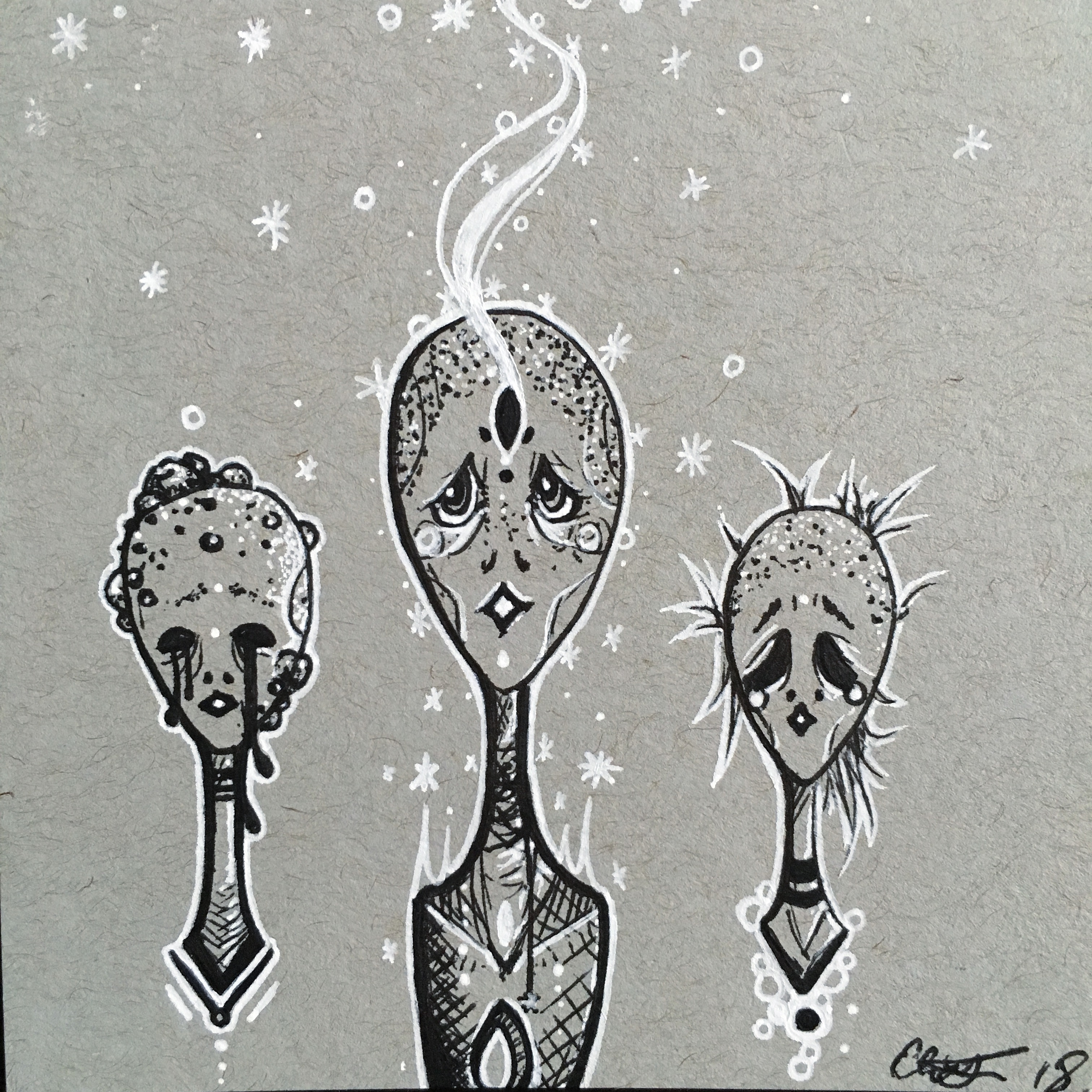 Made with black and white ink on 4x4" toned paper. This is not a print, this is an original piece. Standard shipping charges apply