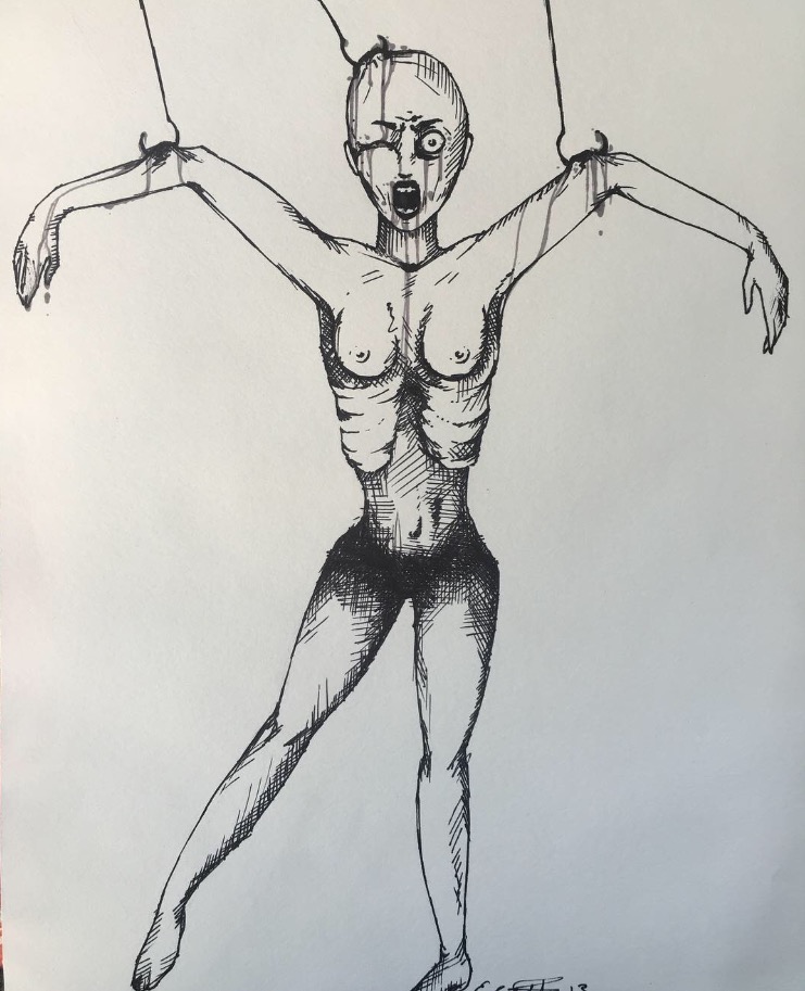 "Hooked" older art from 2013. $50 for this 9x12" piece. Made with black and grey ink. This is not a print, this is an original piece. Standard shipping charges apply.