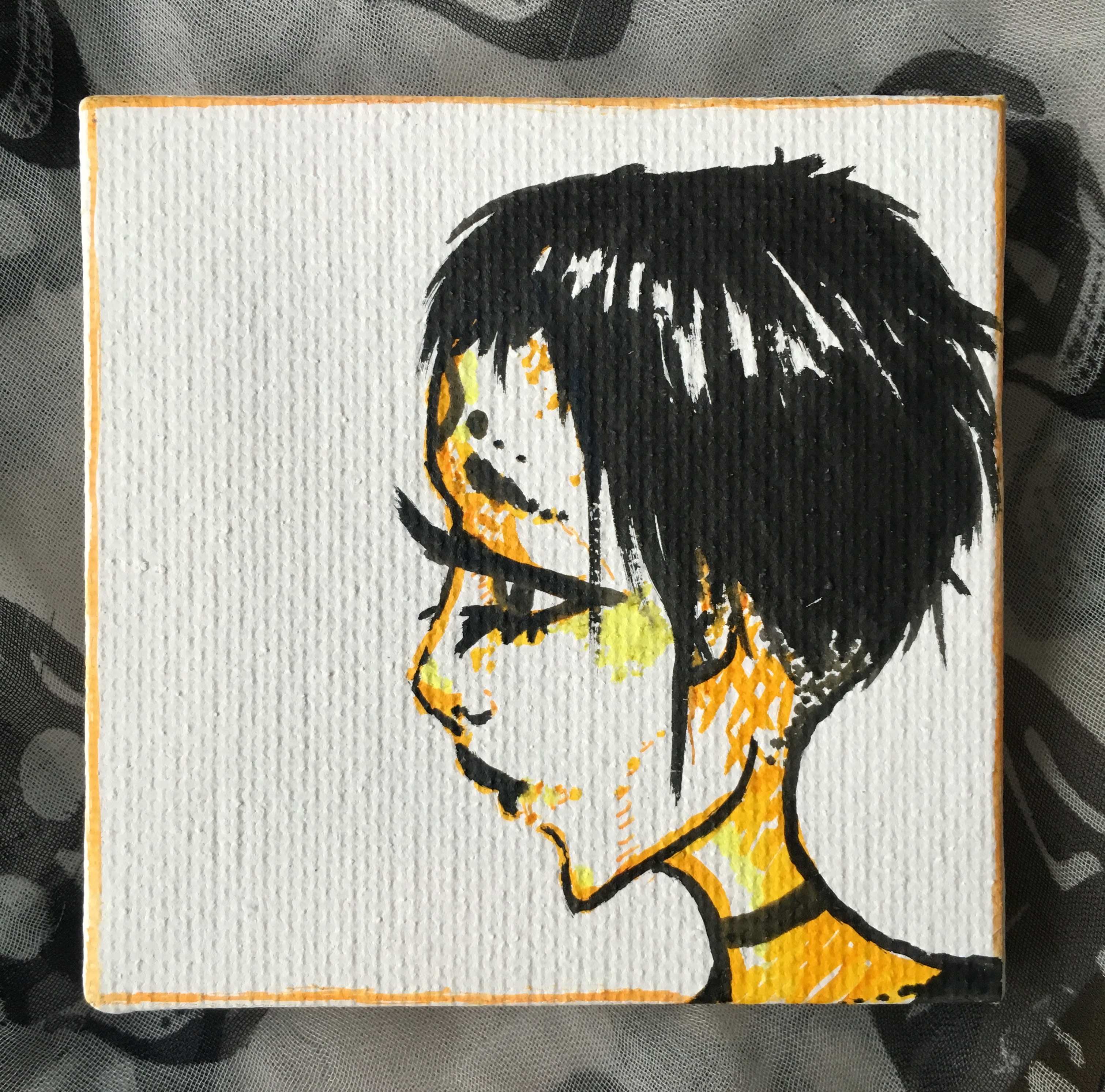 "Golden 1.2" is a 3x3" canvas mini painting. These tiny canvas are easily hung with just a simple nail or thumbtack. Made with watercolour pens. This is not a print, this is an original piece of artwork. Standard shipping charges apply.